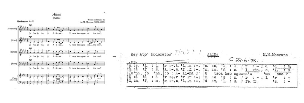My participation in this project (2017-2020) is not so much helping to create the edition itself but using Moerane’s oeuvre to interrogate the notion of ‘genre’. His music is difficult to classify because it embodies other musical genres (from South African and elsewhere) which are themselves mixtures of genres, and belongs to a long tradition of composing that comes out of the colonial mission. It is not a ‘world music’, it is hardly recorded at all, most of it is not transcribed, let alone published. I am therefore tasked with exploring this notion of genre and how it is constructed in this context. My findings will therefore be useful for my colleagues working on the music analysis part of Moerane’s Critical Edition Project.